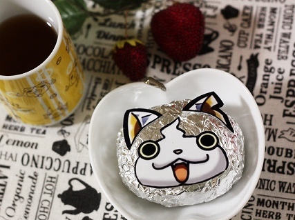4.おにぎりの大きさに合わせてネットなどからダイヤニャンの顔を印刷してパーツごとにカットし、糊や両面テープなどで画像の様にアルミホイルの表面に貼り付けます。