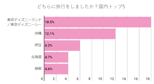 では国内旅行でどこが人気だったかといえば、東京ディズニーランド、東京ディズニーシーを擁する東京ディズニーリゾートが第1位に!