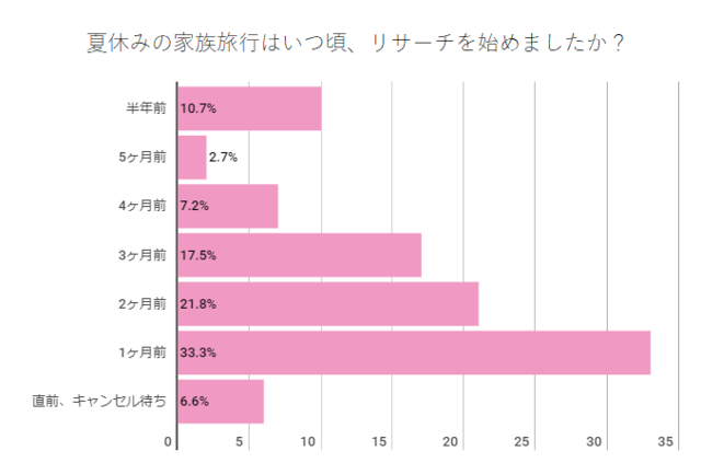 それでは、夏休みの長期旅行で先輩ママパパはどのような場所に行っているか、見てまいりましょう。