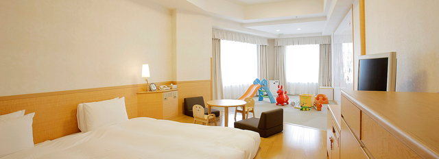 出典:www.hotel-emion.jpミキハウス子育て総研「ウェルカムベビーのお宿」が認定した和洋室Aタイプ、キッズプレジャールームを利用するプランをはじめ、小さい子ども連れ家族向けのプランが大充実したホテル エミオン 東京ベイ。