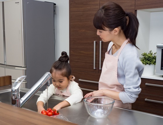 キッチンが子どものお手伝いデビューのステージに!楽しく一緒にキッチンで過ごそう。