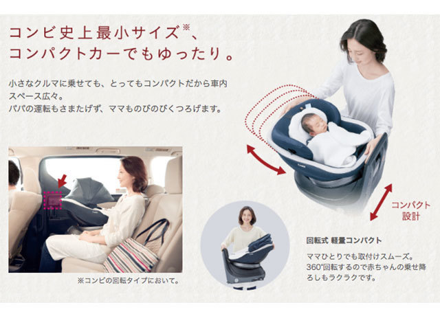 出典:www.combitown.jp「産まれる前に購入し、退院した初日からずっと使わせてもらっています。うちは軽自動車ですが、コンパクトでさほど場所も取らず、後部座席もゆったりと座れています。