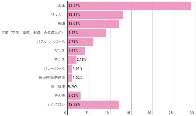 そしてサッカー、野球と球技が続き、礼儀を重んじる空手や柔道などの武道が4位、バスケットボールが5位にランクイン。