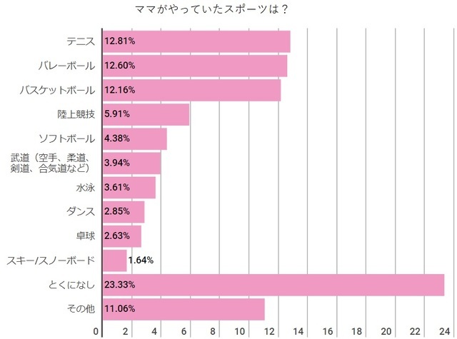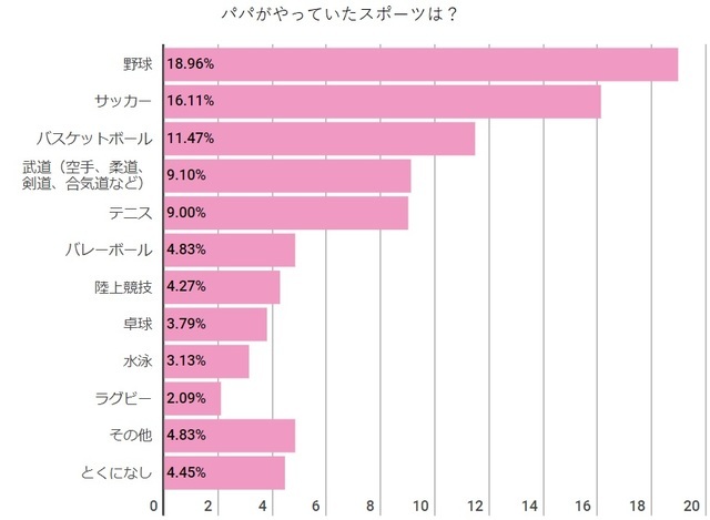 ところで、回答を寄せていただいたママパパが過去にやっていたスポーツ活動では何が人気だったのでしょうか?「習わせたい」ランキングの結果に、何らかの影響を及ぼしているのでしょうか?