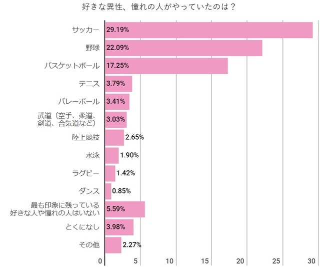 野球は圏外と男の子ほどの支持がない代わりに、ソフトボールが10位に。近年、ニュースなどで女子日本代表チームの活躍を目にするなど、男子に比べより脚光を浴びているので納得?