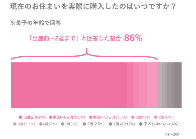 賃貸にお住まいのママパパにとって、マイホーム取得のタイミングはいつがベストなのか、というのは気になるところ。では既にマイホームにお住まいのママパパは、いつ手に入れたのでしょうか。