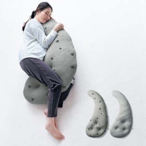 特徴的なカーヴを描いている本体は上下が非対称のデザイン。抱きつくほうが高く、足ではさむほうが低くと、変化に富んでいるので、赤ちゃんの体格や姿勢に合わせて授乳に最適なポジションを作りやすいのもポイント。