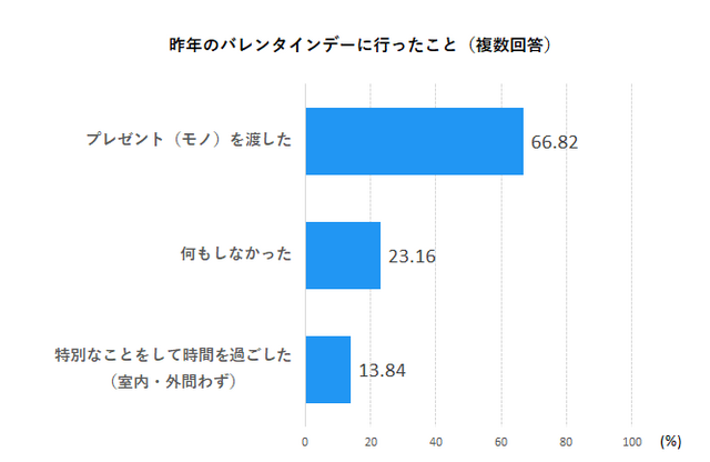 ●昨年のバレンタインプレゼントは「物を渡した」と答えたのは約70%、「特別なことをして過ごした」と答えたのは約10%