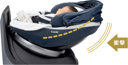 ※1 もしもの衝撃を背中で受けられる角度で、赤ちゃんの快適性に配慮して可能な限りシートを寝かせた形状。