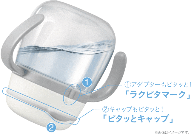 アダプターと本体の「ラクピタマーク」を合わせて締めるだけで、よくあるアダプターのすき間漏れを防止。