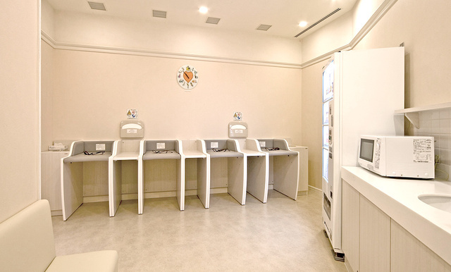ベビールームには、授乳室が2部屋、おむつ交換台が4台あり、そのほか、調乳用のお湯や、持参したベビーフードをあたためることもできる電子レンジも完備。