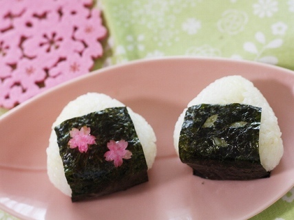三角形のかわいい桜のおにぎりです。