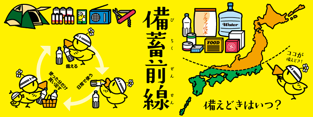※2 普段から少し多めに食材、加工品を買っておき、使った分だけ新しく買い足していくことで、常に一定量の食料を家に備蓄しておく方法。古いものから使い、使った分は必ず補充することで防災備蓄となる(トクする!防災より)
