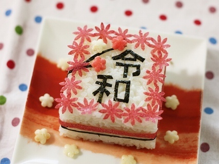 海苔は無理に繋げて文字にしなくても、海苔を直線でいくつかカットしたものを作り、ご飯の表面で『令和』の文字にしても良いです。