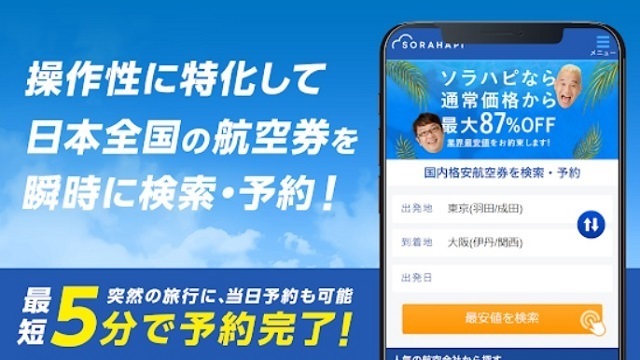 そんな時には、面倒な航空券予約が超スピーディにできちゃう「ソラハピ」がおすすめですよ。