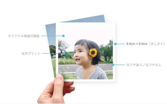 「写真をプリントできるサービス。赤ちゃんを連れてカメラ屋さんに行くのは大変なのでスマホで選んで出来上がった写真が自宅に届くので楽ちん!フォトブック作成アプリのように配置などを考える手間もないのもまとまった時間がとれない子育て中にはうれしい。真四角でかわいい!」( halkさん)