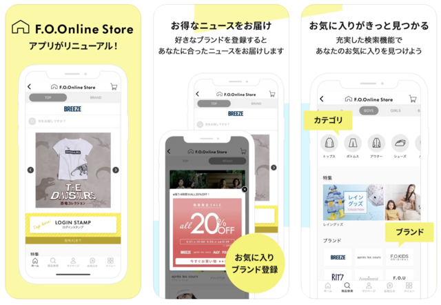 人気子供服ブランド「BREEZE(ブリーズ)」や「apres les cours(アプレレクール)」などを全国展開するF・O・インターナショナルの公式アプリです。