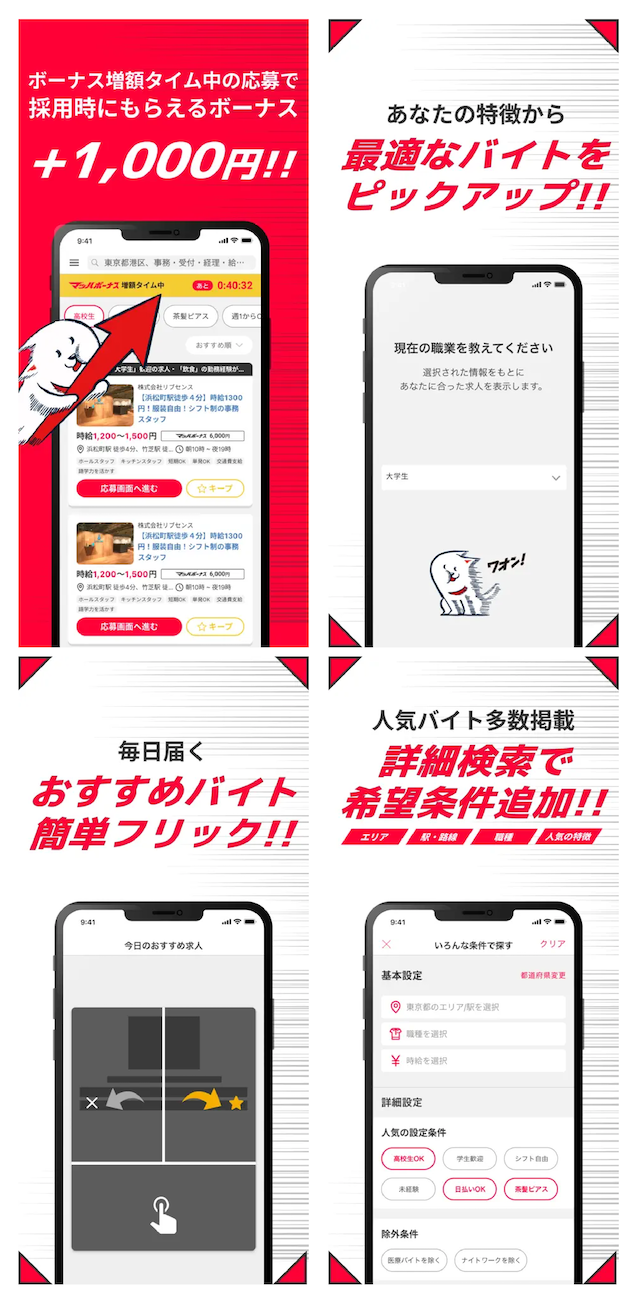 こちらは、なんと採用されるとお祝い金が最大1万円もらえるという驚きのアプリ!