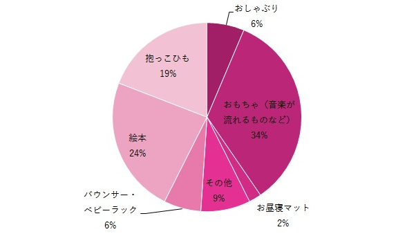 A.買ってよかった1歳児の寝かしつけグッズは、おもちゃ(音楽が流れるものなど)が34%!