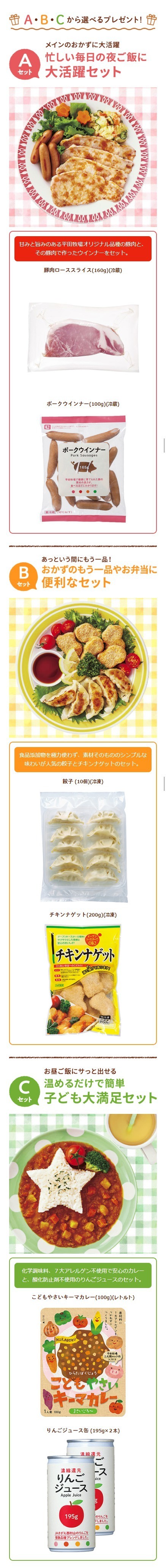 食の安全にこだわった「生活クラブ」のことがよくわかる資料を申し込むだけで、生活クラブ商品がセットになったプレゼントから、好みのセットを選んでもらえちゃいます。