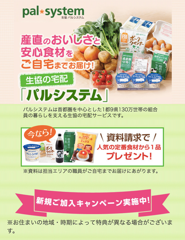 「パルシステム」の資料請求でもれなく人気商品1品をプレゼント!