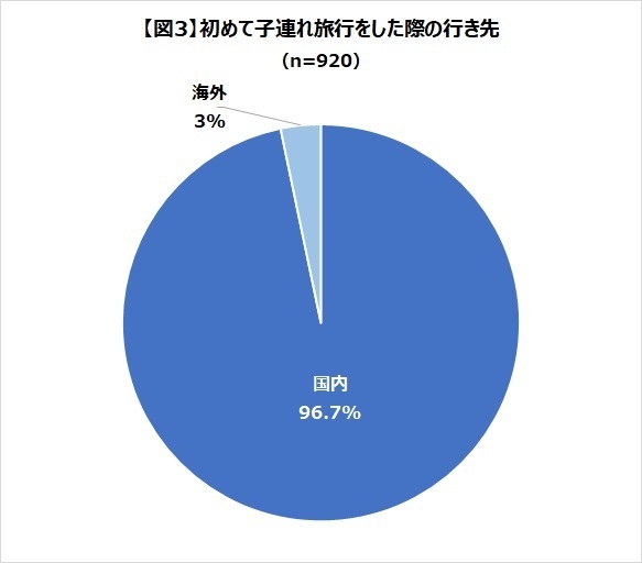 ●子連れでの初めての旅行先は、9割以上が「国内」