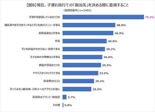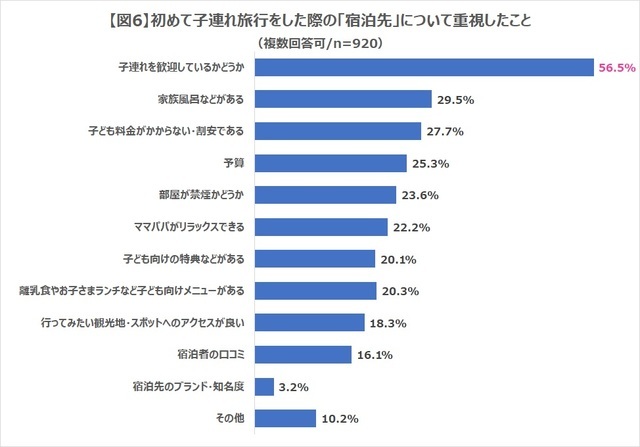 「宿泊先」で重視したことも「子連れを歓迎しているかどうか」が第1位