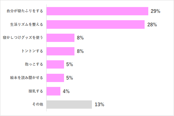 - ▼A.やってよかった「1歳児の寝かしつけ対策」は、「自分が寝たふりをする」が29%!