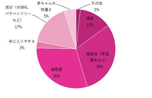 A.買ってよかった「おしりふき」は、「機能性・使用感で選んだ」が30%!