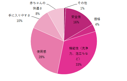 A.買ってよかった「ベビー用シャンプー・ソープ」は、「機能性で選んだ」が33%!