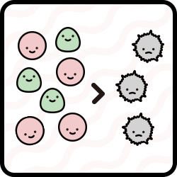 みなさんがよく聞く「乳酸菌」は、善玉菌の代表。乳酸菌などの善玉菌の多い腸内環境が、おなかの健康維持につながるのです。