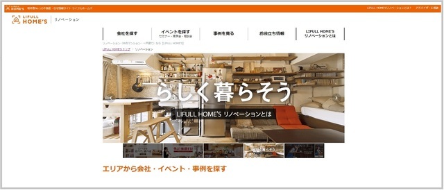 LIFULL HOME’Sでは中古一戸建て、リフォーム済み物件など、人気テーマ別の検索が可能なうえに、リフォーム、リノベーションの会社を探すこともできるのが魅力。