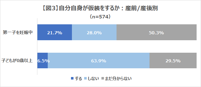 - ▼子どもを出産前の人と比べて出産後は、ハロウィンを行なう予定が「ある」人の割合が高い。