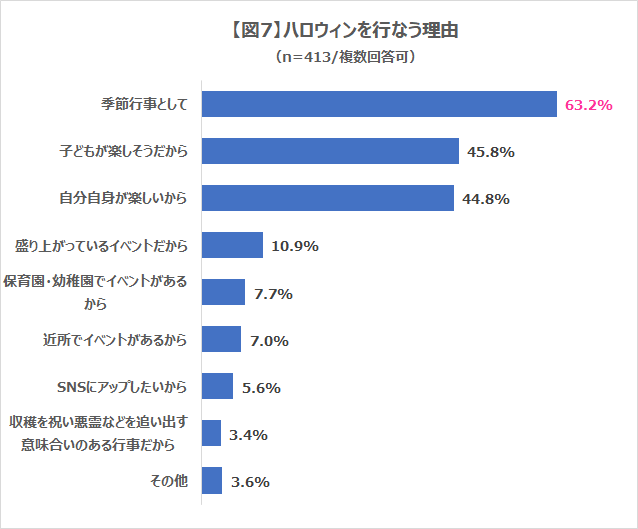 ハロウィンを行なう理由としては「季節行事として」が1位で63.2%