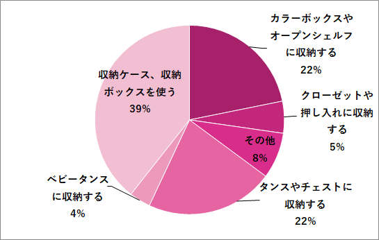 A.やってよかった「ベビー服の収納対策」は、「収納ケース、収納ボックスを使う」が39%!