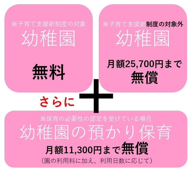 ●子ども・子育て支援新制度の対象となる幼稚園の場合=無料