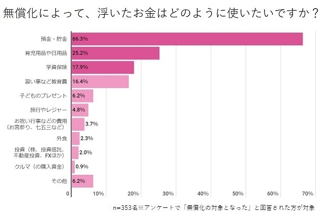 毎月の支払いが無償化になることで、1年を通じてかなりの金額が浮くケースもあるなか、先輩ママパパたちはそのお金をどのように使うイメージがあるのでしょうか。