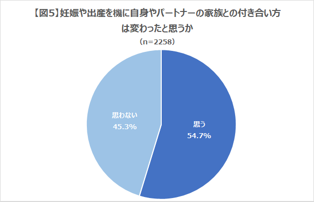 妊娠や出産を機に家族との付き合い方が変わった方は5割以上!