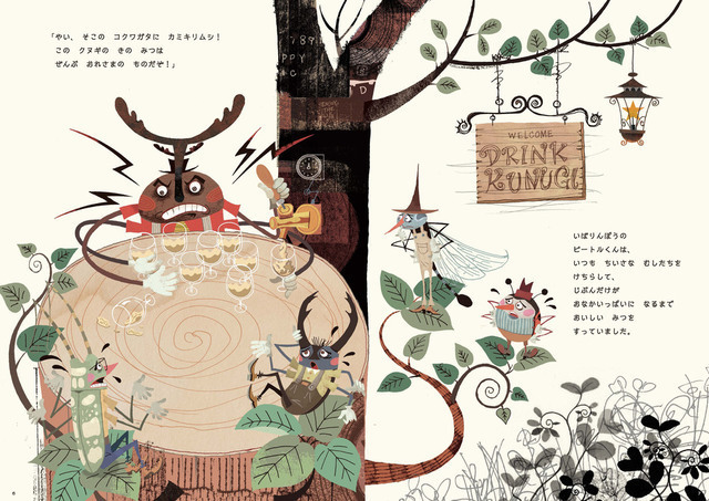 さて、その虫好きの小山さんが、このたび虫がたくさん登場する絵本を作り上げました。その名も、『ビートルくんと きんいろの バウム』です!