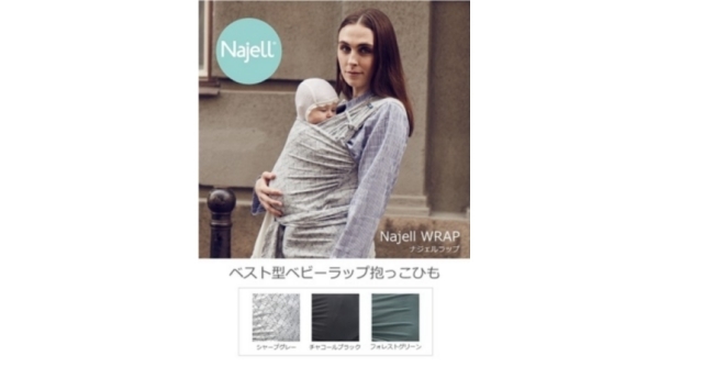 第一弾としまして、ベビーラップタイプの抱っこ紐「Najell WRAP (ナジェルラップ)」(2019年 スウェーデン トイ&ベビー協会 赤ちゃんとお出かけ部門において、年間最優秀賞受賞)を輸入し、2020年1月より全国販売開始しました。