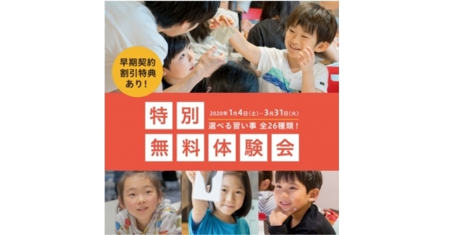 出典:prtimes.jpT-KIDSシェアスクール 柏の葉では、2020年1月4日~3月31日の期間中、全26種類の習い事が全て無料で体験できる「特別無料体験会」を開催しています!