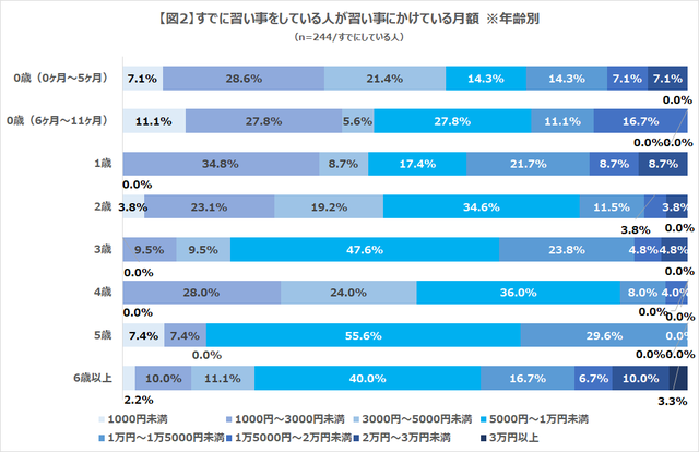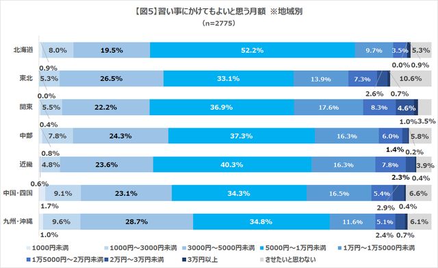 ●習い事にかけてもよい金額は「月額5000円~1万円未満」が最多