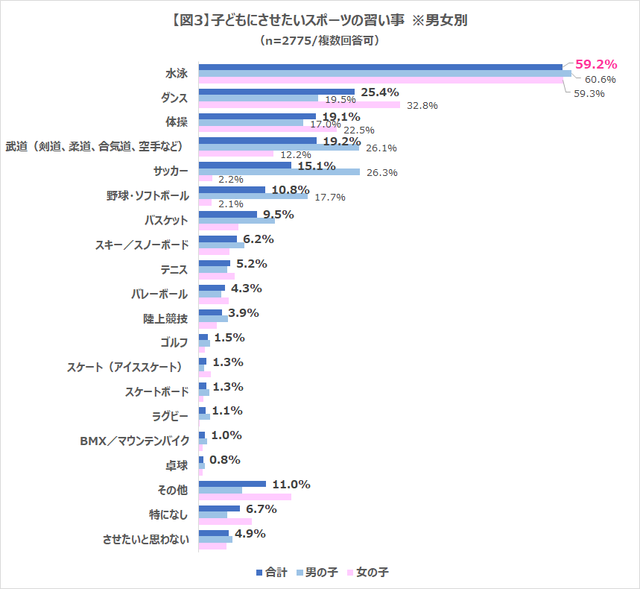 子どもにさせたいスポーツの習い事 1位「水泳」、2位「ダンス」、3位「体操」