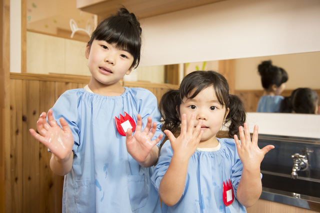 集団生活での手洗い&うがいについては、習慣づくまでは正しいやり方を伝えながらも、できていないときに叱ったりすることなく、褒めてあげたり、やったことを認める言葉がけを心がけます。