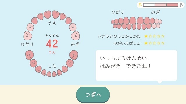 歯磨きが終わったら、リアルに採点!とくてんが高くなくても、ちゃんとほめてくれるから、子どものやる気を毎日キープ。