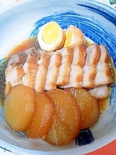 ①大根は1.5センチの厚さに切る。卵はゆで卵にしておく。しょうがはスライスにしておく。