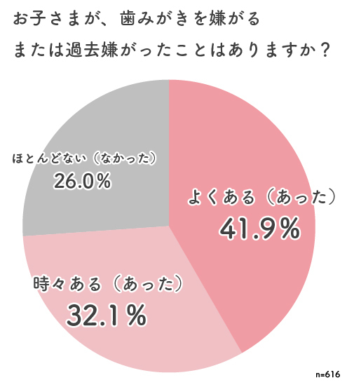 先輩ママパパに聞いてみたところ、74%の方が「子どもが歯みがきを嫌がったことがある」と答えています。