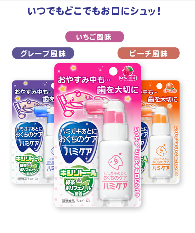 ハモリンはお子さまに大人気のいちご味とぶどう味があり、仕上げみがきにおすすめです。