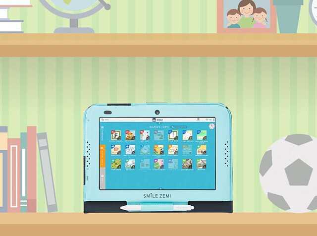 学習のため専用のタブレットを使用する。子どもが一人でできることをコンセプトに作られている。今日のできたを親子で確認しながらコミュニケーションが取れるようになっている。