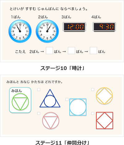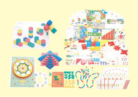 年齢に応じたテーマを設け、思考力を引き出すしかけになっている。さまざまな道具やカードなどを使って子どもが楽しんで取り組めるようになっている。